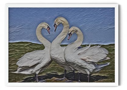 Romantic wall art picture of two swans looking at each other and forming a perfect heart with their necks. Sure to melt even the coldest of hearts. Available in variety of styles to suit your decor.